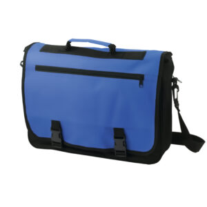 Portadocumentos con solapa de cierre de velcro en poliéster 600D con elegante tira frontal en color negro. Con asas de transporte reforzadas y cinta bandolera ajustable. Producto de tipo portadocumentos, pensado para acciones promocionales y uso diario. Este artículo está diseñado para campañas de marca, ferias y regalos corporativos.